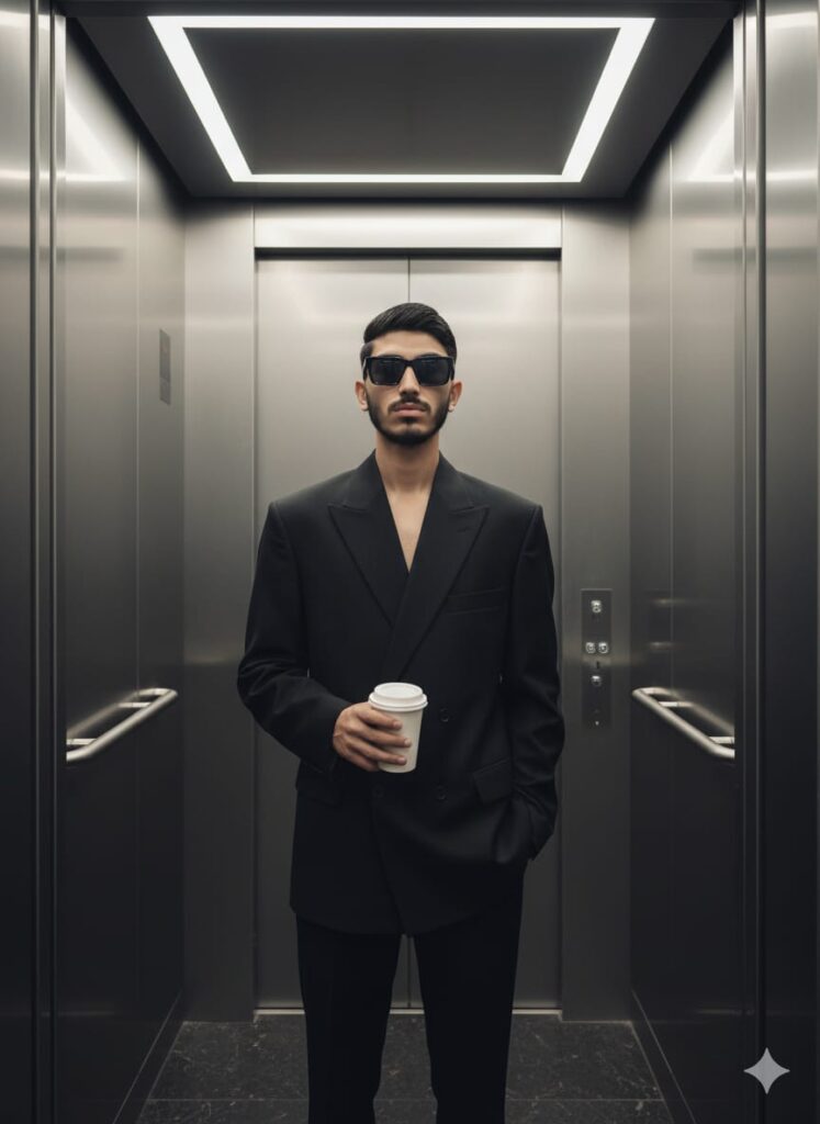 Wallet Options > Blog > Prompts > Modern Elevator Fashion Portrait